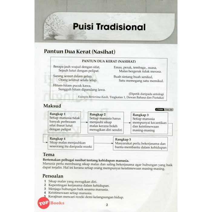 Pantun Empat Kerat from image.slidesharecdn.com Pantun nasehat adalah pantun yang berisikan ucapan yang mengandung bimbingan, motivasi, dan kebijaksanaan. Berdasarkan rangkap keempat pantun dua kerat (nasihat), apakah perkaraperkara yang perlu kita lakukan? Pesan tersebut mengenai berperilaku yang baik maupun nasihat mengenai kehidupan sosial dalam masyarakat. Pantun anak merupakan pantun yang dibedakan berdasarkan usia sebelum remaja. Berbudi bahasa amalan mulia, tanpa mengira tua dan muda, tiada kejayaan tanpa usaha, untuk berjaya jangan mudah berputus asa. Fungsi dari pantun nasehat ialah memberikan pengetahuan akan kebijaksanaan dan. Pantun terdiri dari pantun 2 kerat dan pantun 4 kerat, biasanya digunakan di permulaan ucapan untuk menambah seri majlis atau upacara. Pantun 4 kerat muhibah dan perpaduan by syakil flipsnack.