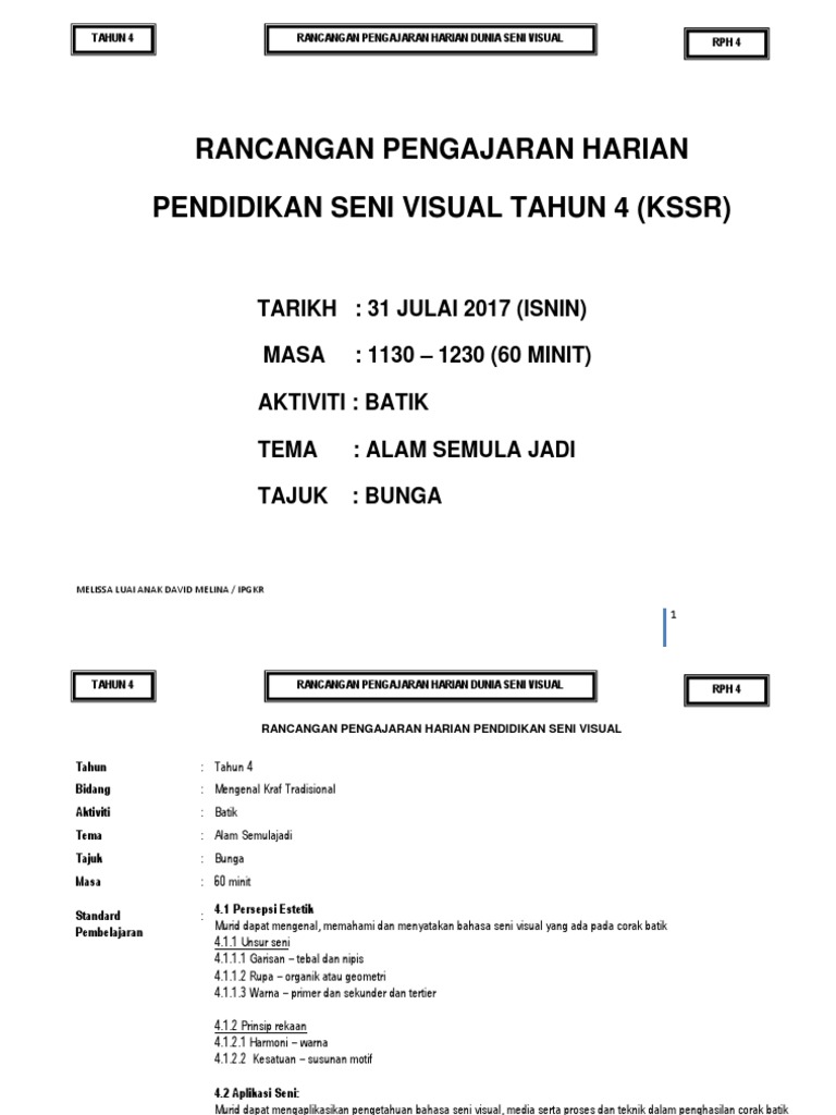 Bahasa malaysia tahun 4 tema : Rph kssr dunia seni visual dsv tahun 4.ppt. Berikut disenaraikan rph bagi semua subjek untuk tahun 2. Rancangan pengajaran harian sejarah mata pelajaran sejarah kelas tahun 4 cerdik bilangan 39 orang tema tajuk mari belajar. 0 ratings0% found this document useful (0 votes).